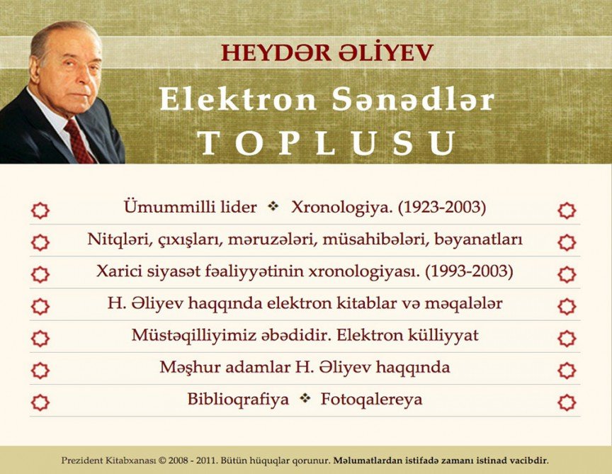 Dekabrın 11-də Prezident Kitabxanasında Ümummilli Liderin anım mərasimində kitabxananın direktoru Mayıl Əhmədov həmin elektron resursun son bir il ərzində yenilənən bölmələri barədə ətraflı məlumat verib, gələcəkdə də onun yeni-yeni sənədlərlə daha da zənginləşdiriləcəyini bildirib.